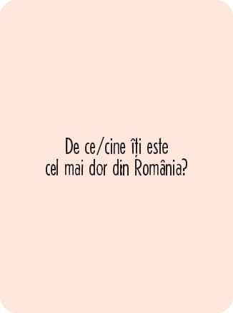 Nu în ultimul rând este un joc care va naște discuții ce merită purtate: despre oameni, despre locuri, despre doruri. Despre cum se vede România de acolo și cum se simte când te întorci aici. Un joc care celebrează cât de diferiți suntem și ne reamintește că avem atât de multe lucruri în comun, oriunde ne-am fi născut și oriunde am ales să trăim.